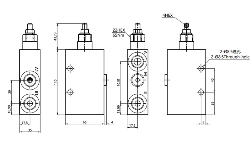 | Односторонний уравновешивающий клапан MCBS-08 | 350 бар | 40 л/мин |