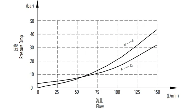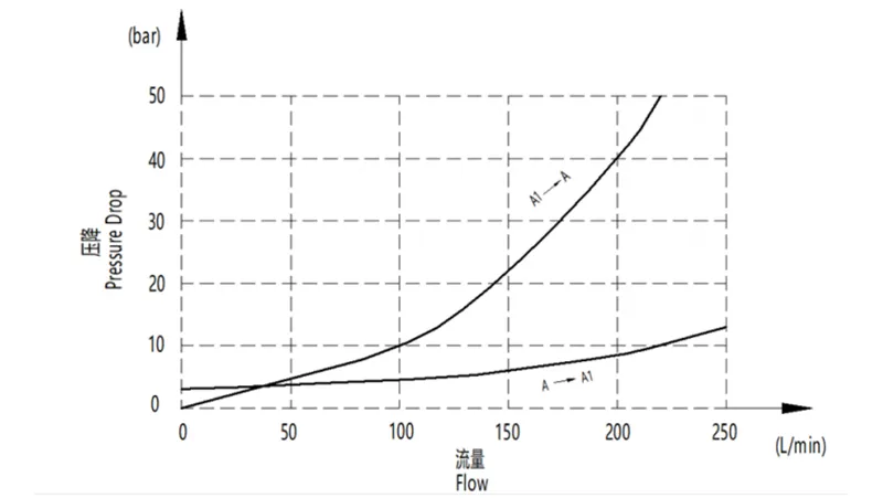 Фланцевый клапан контроля опускания груза предназначен для точного и безопасного управления нагрузкой в гидравлических приводах. При прямом потоке (A → A1) гидравлическая жидкость свободно проходит через встроенный обратный клапан к гидроцилиндру. При обратном потоке (A1 → A) нагрузочная секция гидравлического клапана блокирует или дросселирует движение жидкости, а золотник обеспечивает точное регулирование потока при открытии. Предохранительно-разгрузочный гидроклапан сохраняет нормально-закрытое положение и управляется дистанционно через пилотное давление, гарантируя стабильное удержание нагрузки независимо от ее веса.
