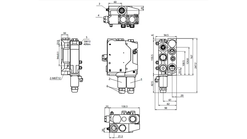 - Модульная, компактная конструкция, которую можно комбинировать с многокатушечными клапанами для интегрированного гидравлического управления